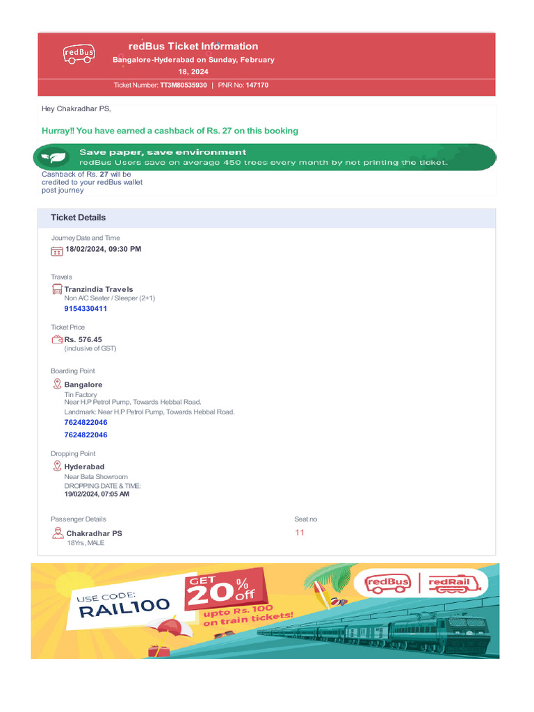 redBus Ticket Information