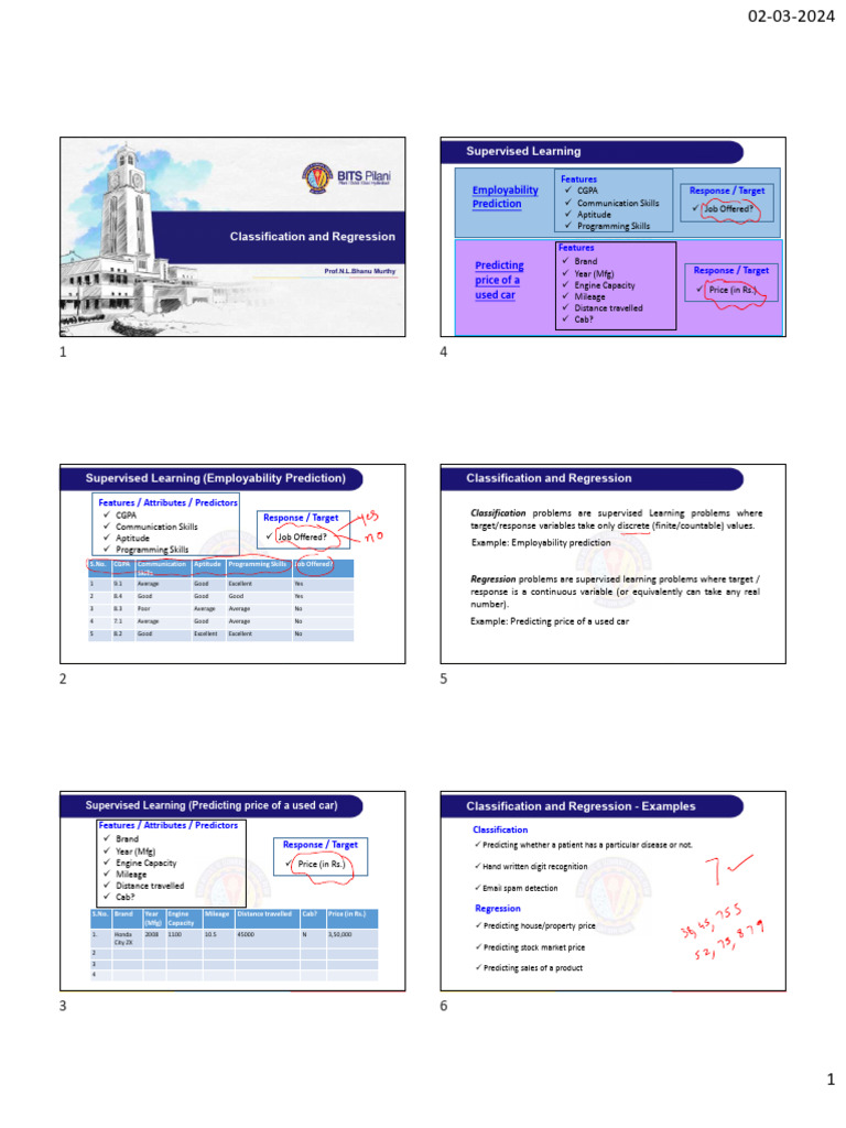 Supervised Learning (Predicting price of a used car) Classification and Regression - Examples