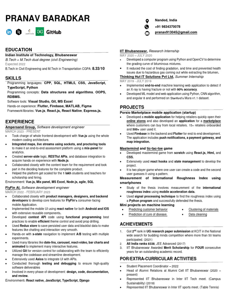 Used many libraries like date-fns, carousel, react-video, bar charts and 2. All India ranks 8338, JEE Advanced (2017)
