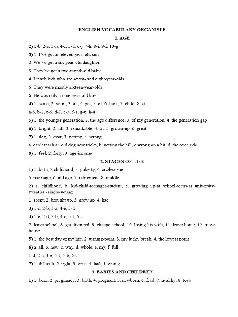 5) 1. the younger generation, 2. the age difference, 3. of my generation, 4. the generation gap