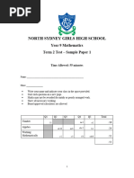 ANSWER SHEET GRADE 9 MATHEMATICS PAPER 1