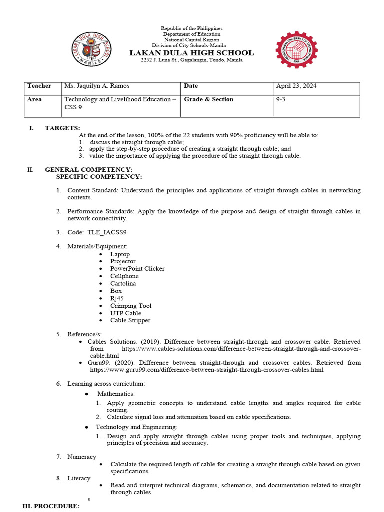 Teacher Ms. Jaquilyn A. Ramos Date April 23, 2024