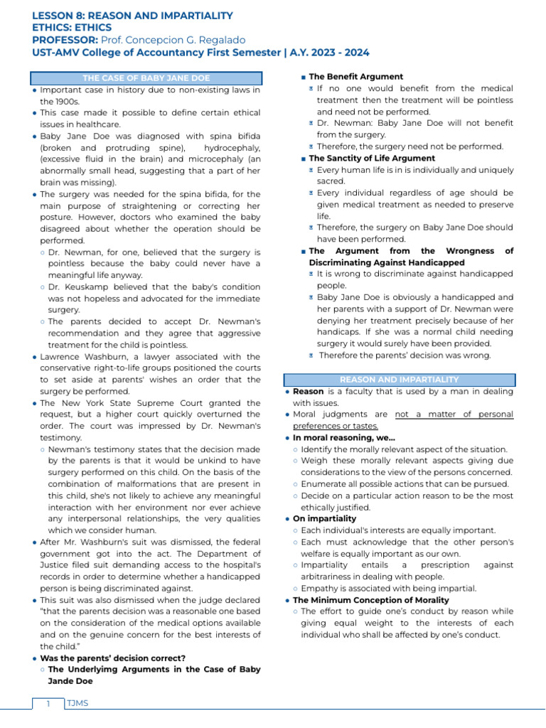 LESSON 8: REASON AND IMPARTIALITY