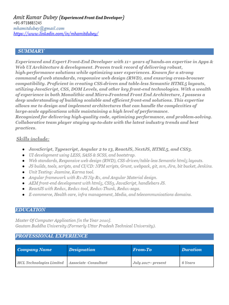 Amit Kumar Dubey (Experienced Front-End Developer)