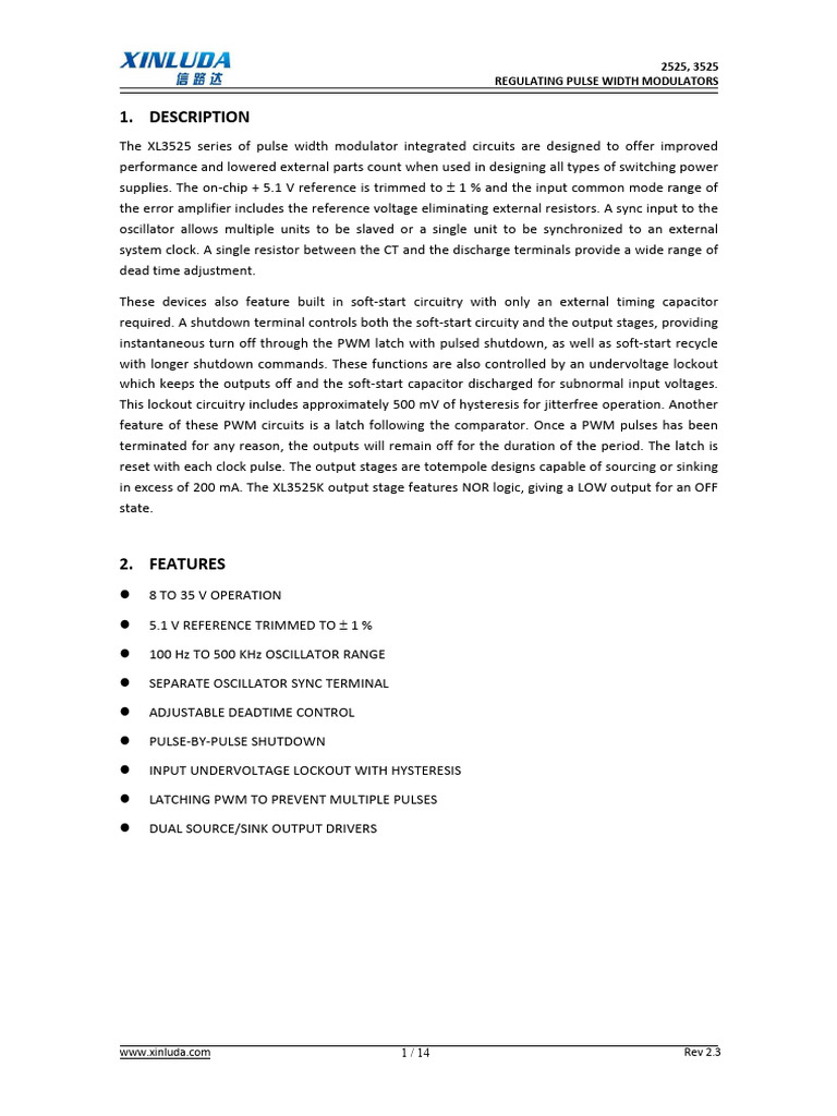 The XL3525 series of pulse width modulator integrated circuits are designed to offer improved