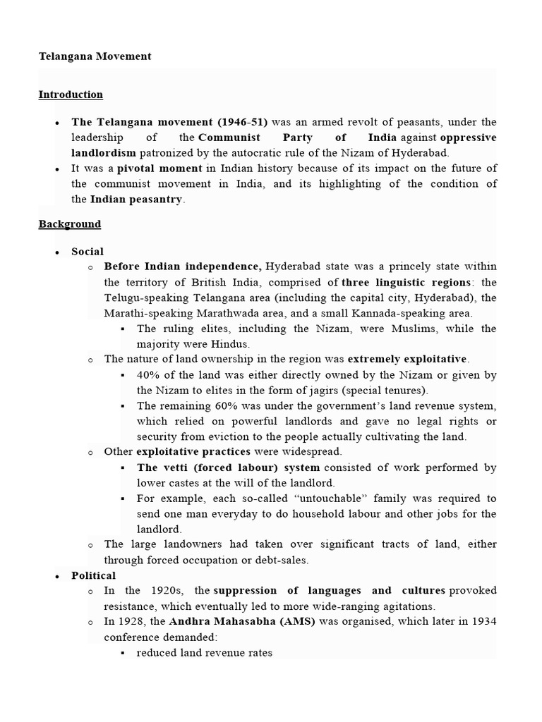 The Telangana movement (1946-51) was an armed revolt of peasants, under the