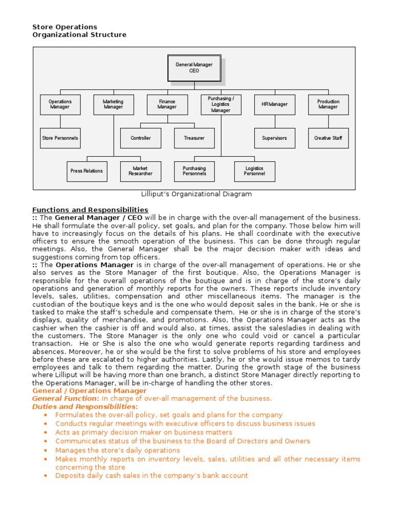 where Lilliput will be having more than one branch, a distinct Store Manager directly reporting to