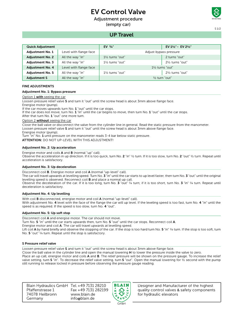74078 Heilbronn www.blain.de for hydraulic elevators