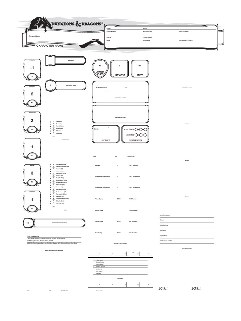 CLASS & LEVEL BACKGROUND PLAYER NAME