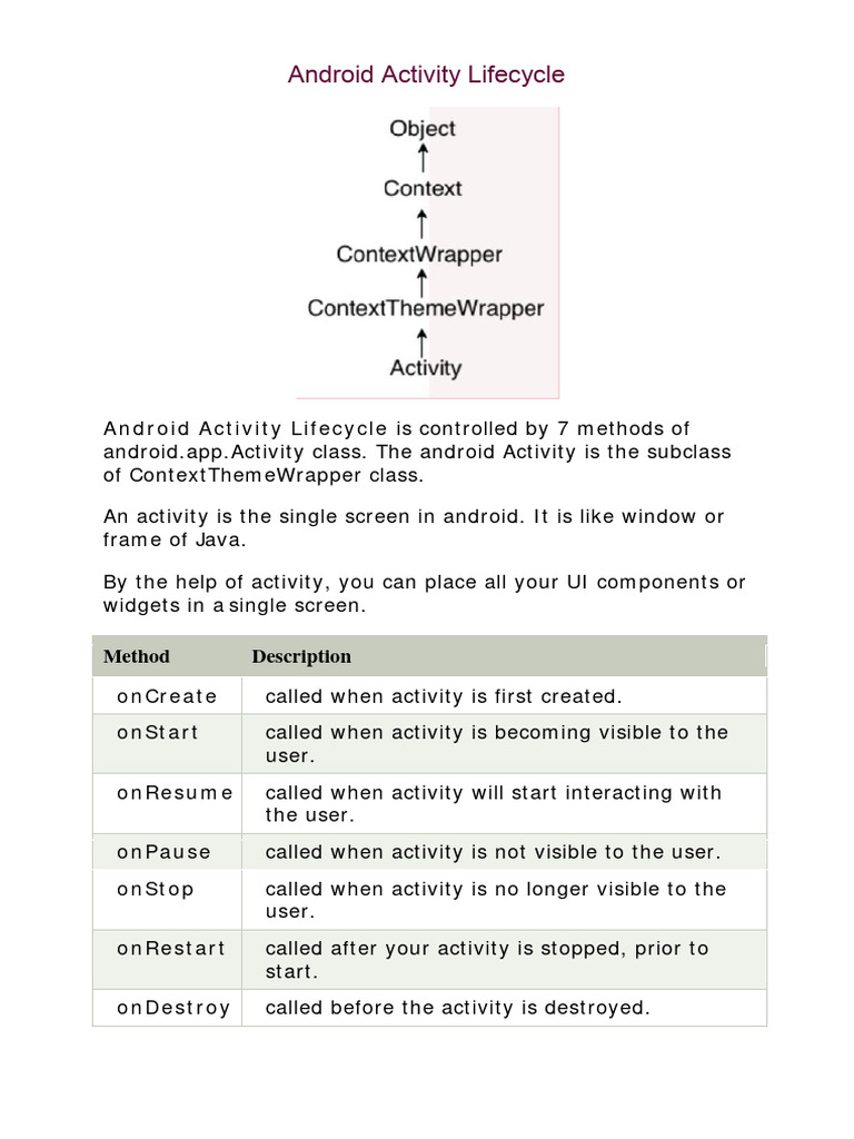 [Link] class. The android Activity is the subclass