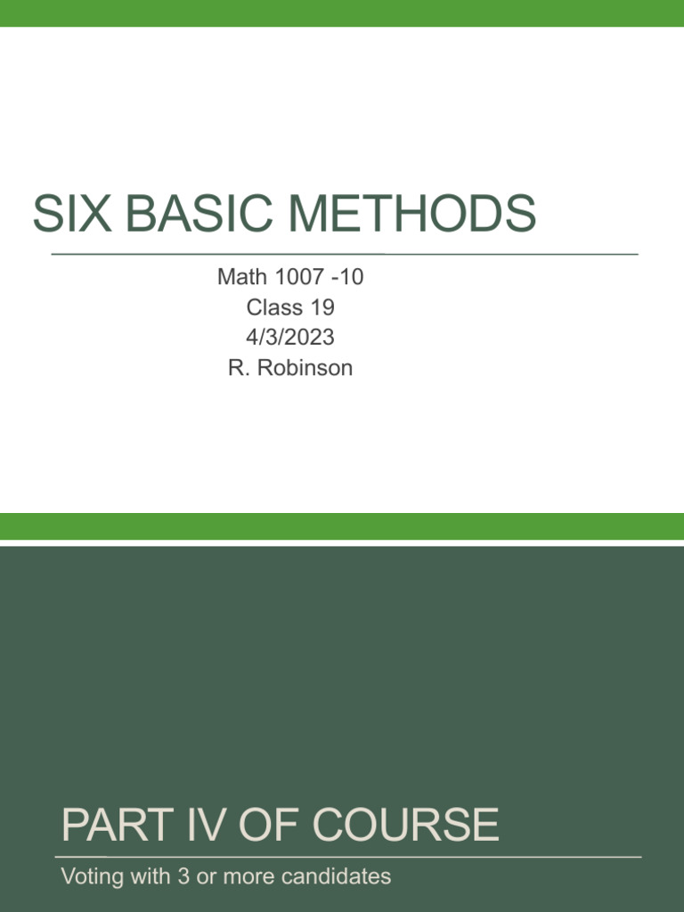 • In Chapter 1 (for 2 candidates) simple majority often the