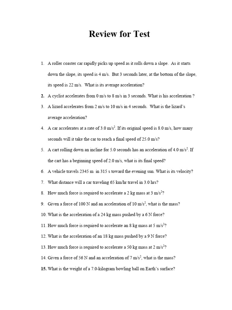12. What is the acceleration of an 18 kg mass pushed by a 9 N force?
