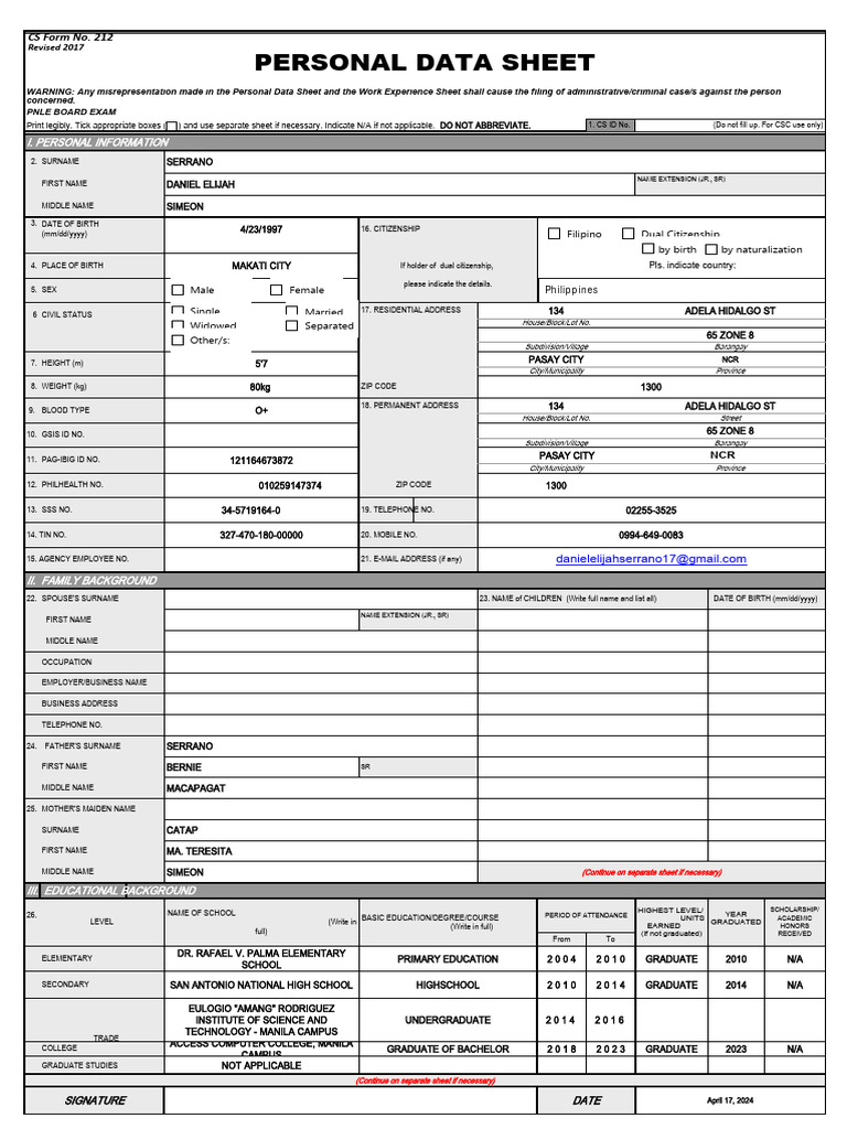 PERSONAL DATA SHEET