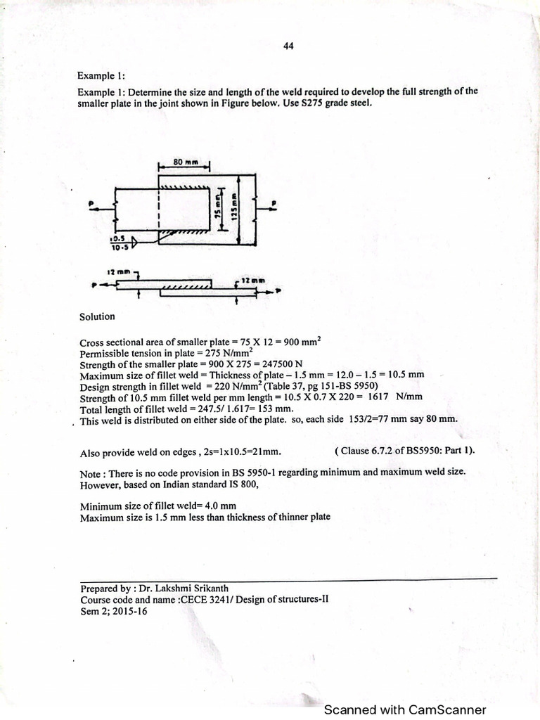 Maximum size of fillet weld = Thickness of plate ~ 1.5 mm = 12.0 1.5 = 10.5 mm
