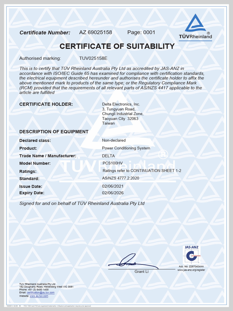 This is to certify that TÜV Rheinland Australia Pty Ltd as accredited by JAS-ANZ in