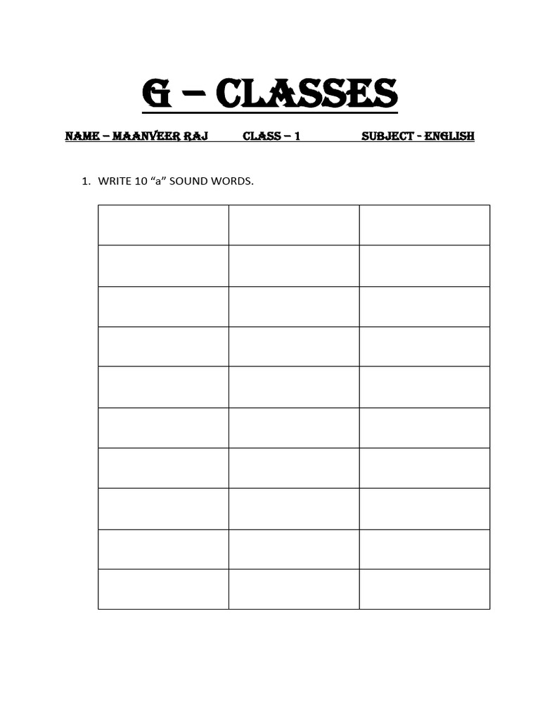1. WRITE 10 “a” SOUND WORDS.
