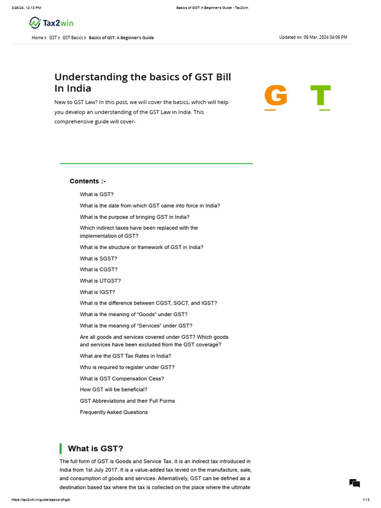 3/28/24, 12:13 PM Basics of GST: A Beginner's Guide - Tax2win