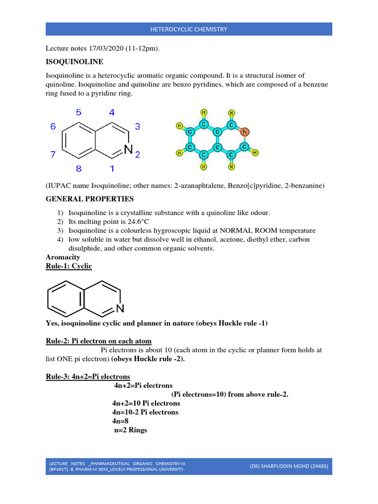 1) Isoquinoline is a crystalline substance with a quinoline like odour.