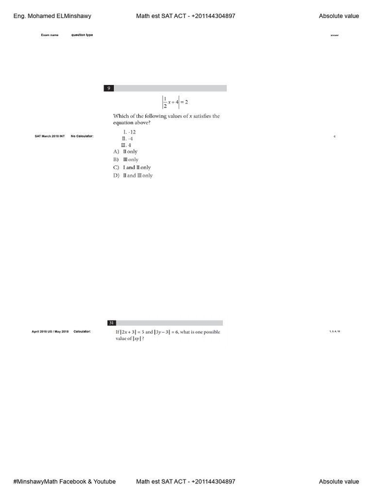Eng. Mohamed ELMinshawy Math est SAT ACT - +201144304897 Absolute value