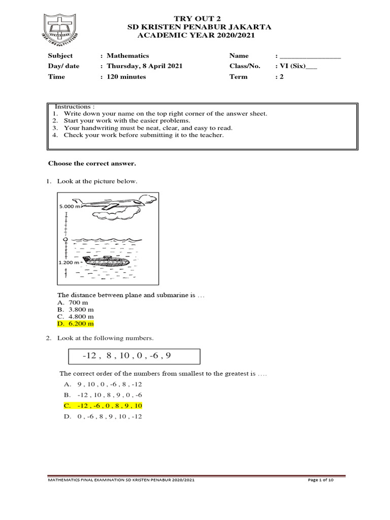 MATHEMATICS FINAL EXAMINATION SD KRISTEN PENABUR 2020/2021 Page 1 of 10