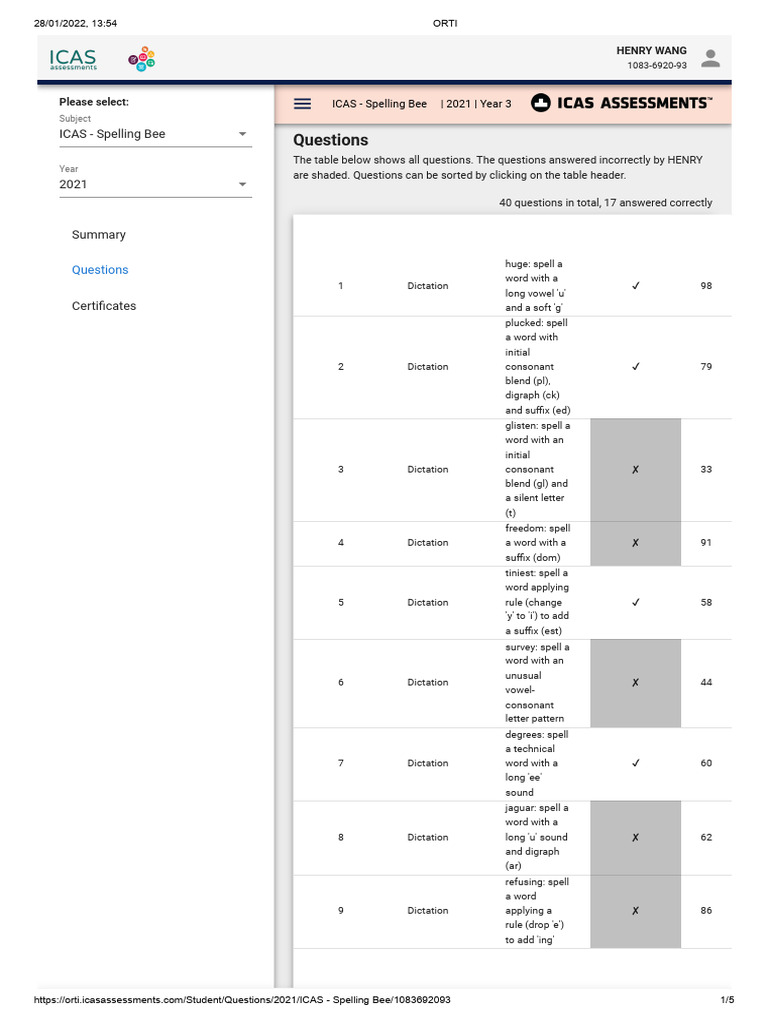 menu ICAS - Spelling Bee | 2021 | Year 3