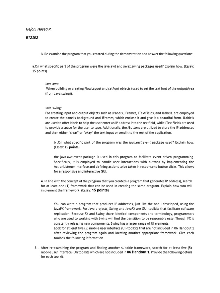 a.On what specific part of the program were the java.awt and javax.swing packages used? Explain how. (Essay: