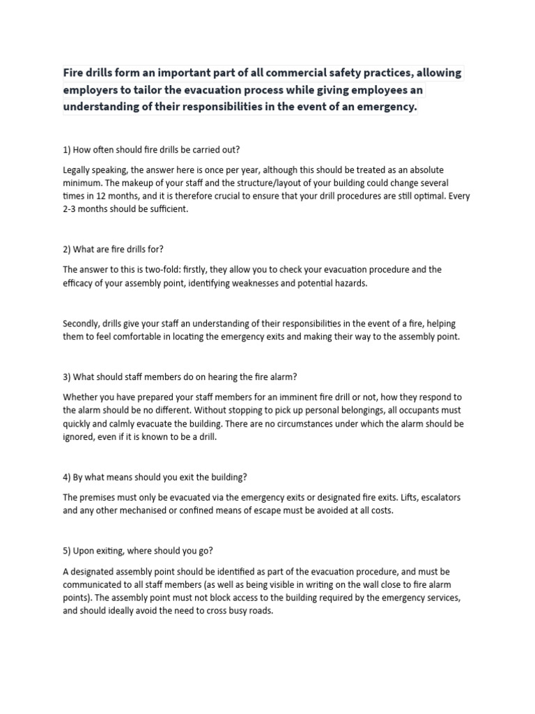 Fire drills form an important part of all commercial safety practices, allowing