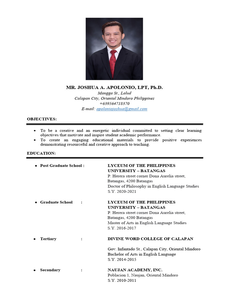 MR. JOSHUA A. APOLONIO, LPT, Ph.D.