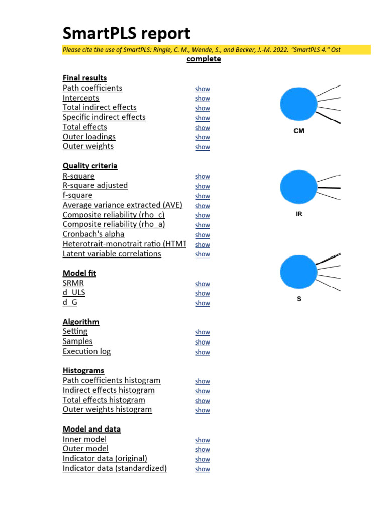 Please cite the use of SmartPLS: Ringle, C. M., Wende, S., and Becker, J.-M. 2022. "SmartPLS 4." Oststeinbek: SmartP