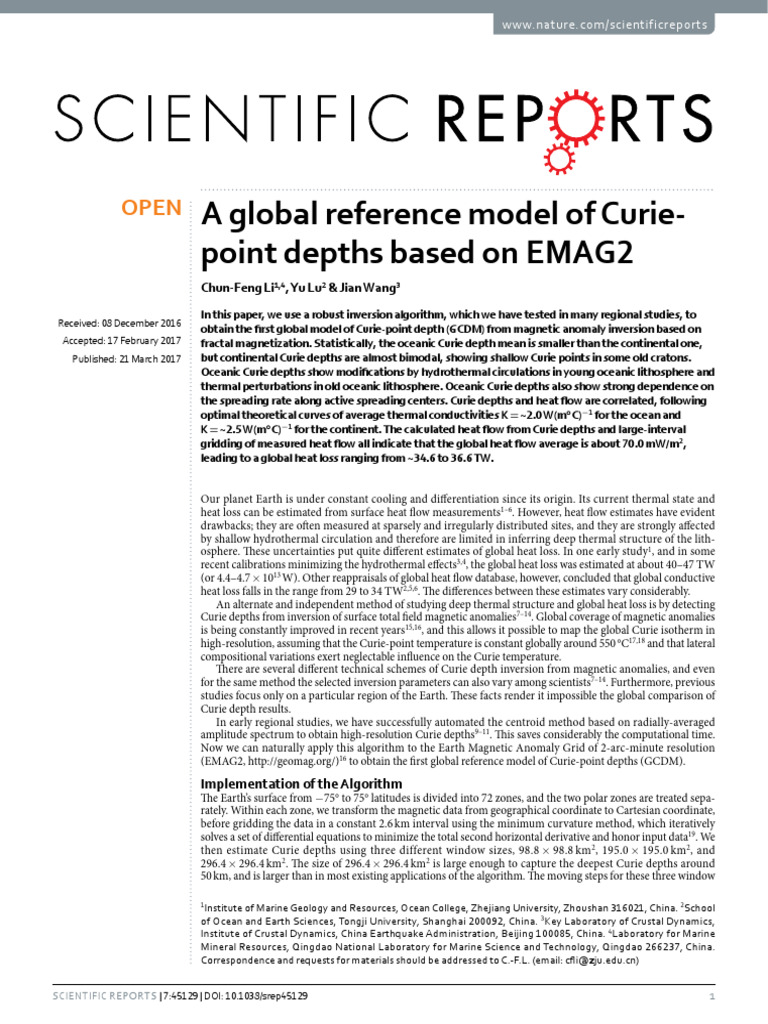 20. Li, C.-F. & Wang, J. Variations in Moho and Curie depths and heat flow in Eastern and Southeastern Asia. Mar. Geophys. Res. 37,