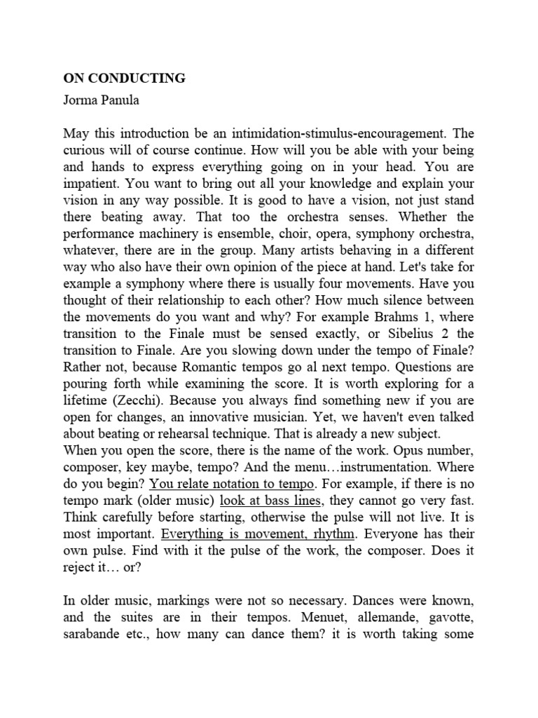 own pulse. Find with it the pulse of the work, the composer. Does it
