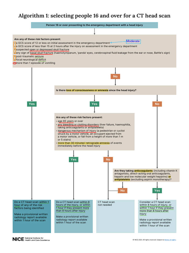 Do a CT head scan within 1 hour Consider a CT head scan within 8 CT head scan not needed
