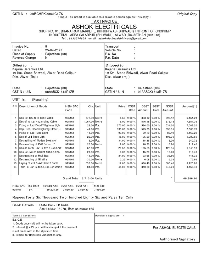 GSTIN : 08BCHPK9993C1Z5 Original Copy