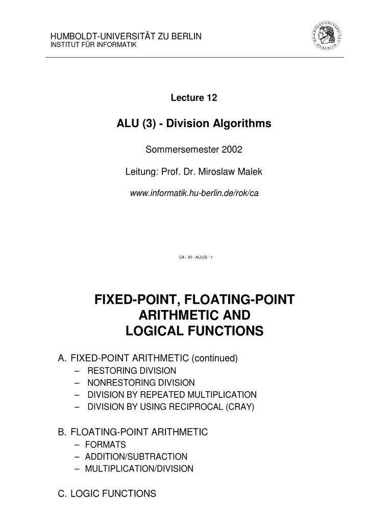 FIXED-POINT, FLOATING-POINT ARITHMETIC AND LOGICAL FUNCTIONS