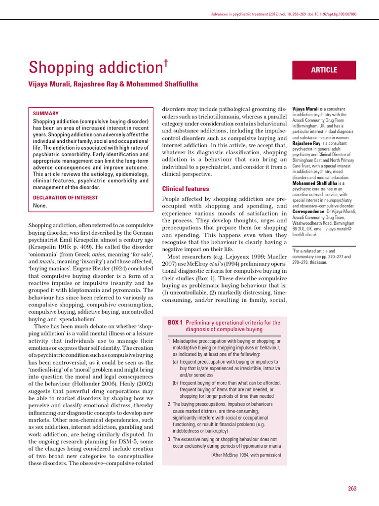 Dittmar H (2005) Compulsive buying – a growing concern? An examination depression. Journal of Affective Disorders 71: 1–9.
