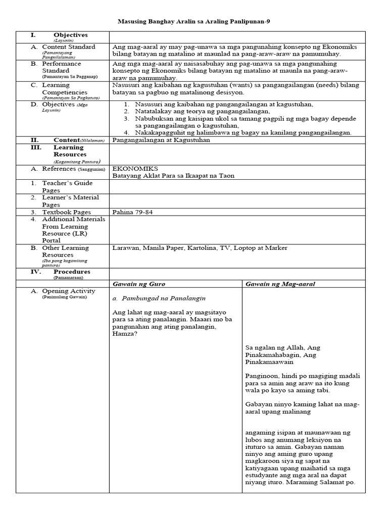 II. Content(Nilalaman) Pangangailangan at Kagustuhan