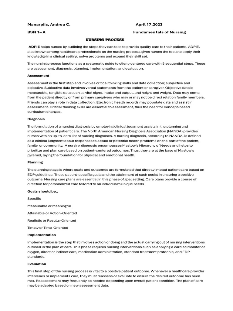 ADPIE helps nurses by outlining the steps they can take to provide quality care to their patients. ADPIE,