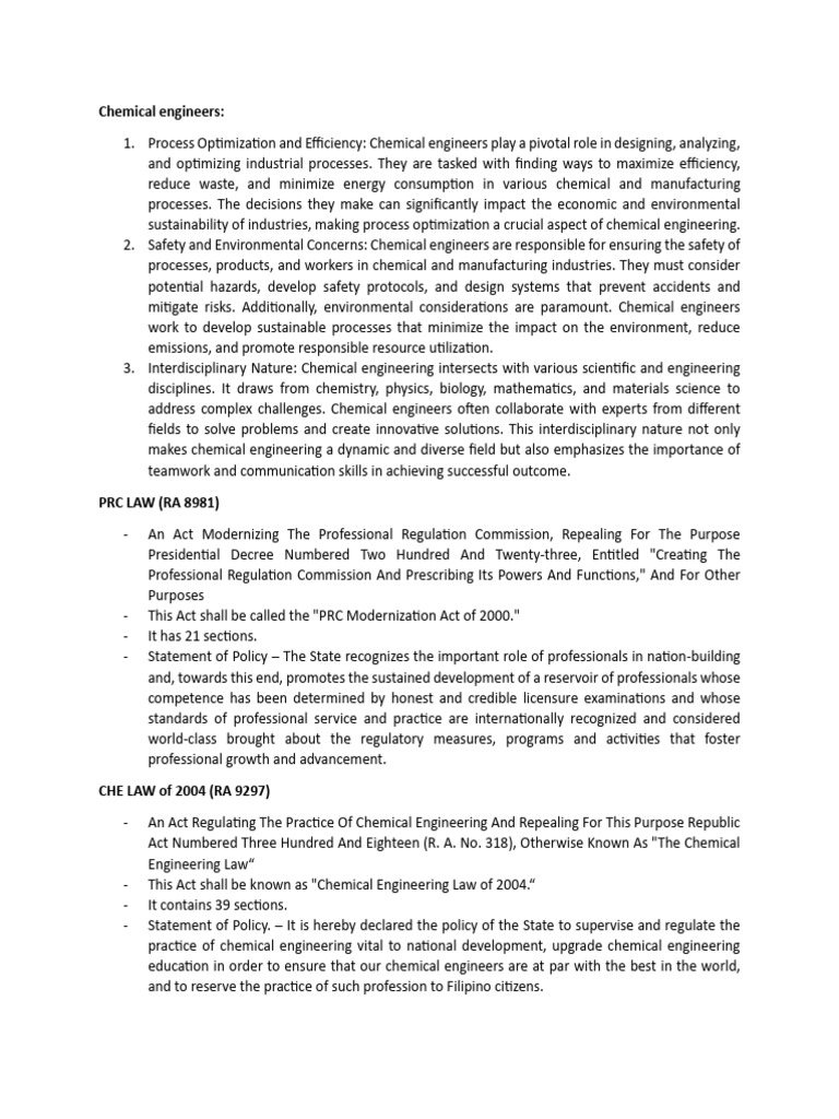 - Supervise and regulate the practice of the chemical engineering profession.