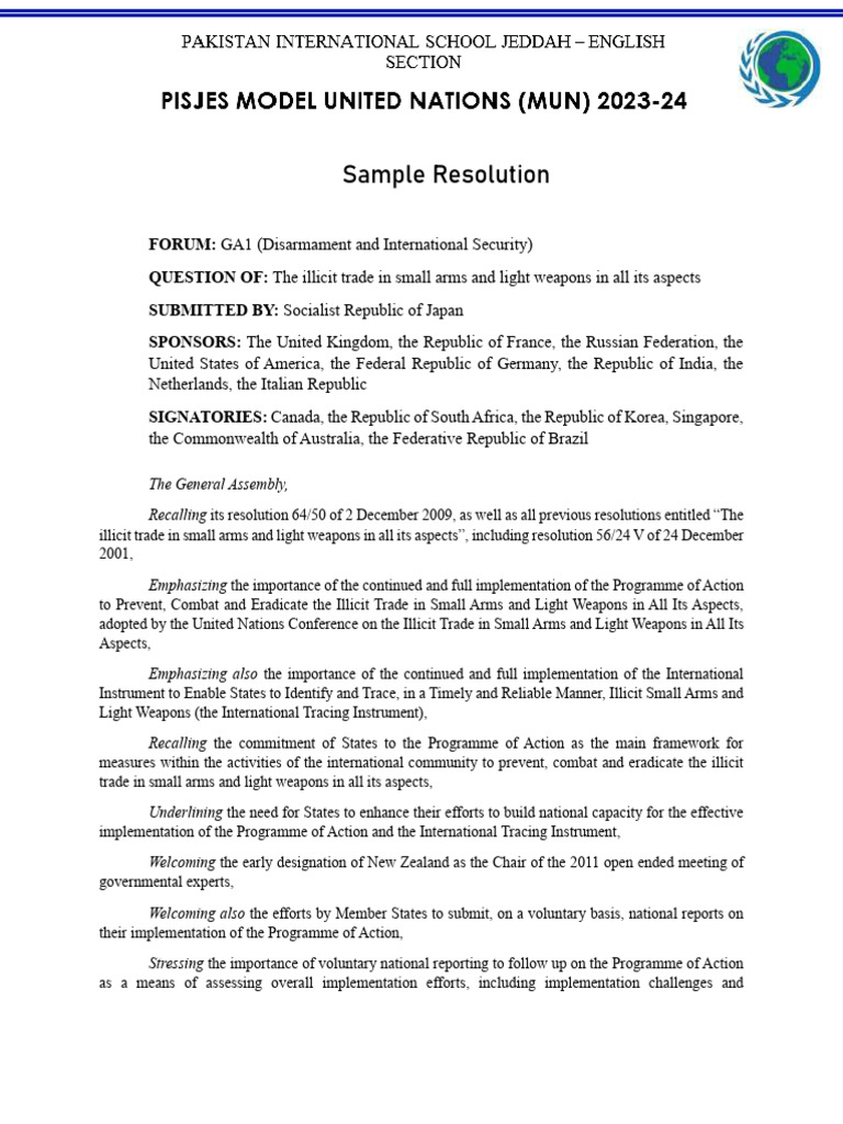 illicit trade in small arms and light weapons in all its aspects”, including resolution 56/24 V of 24 December