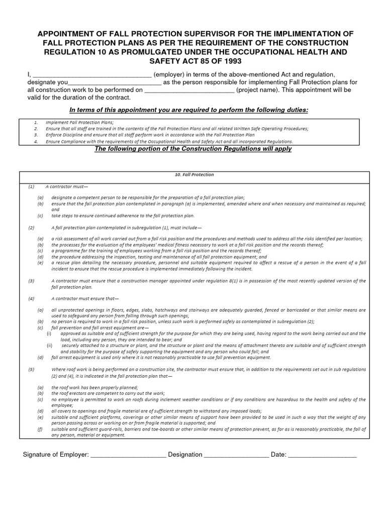 APPOINTMENT OF FALL PROTECTION SUPERVISOR FOR THE IMPLIMENTATION OF