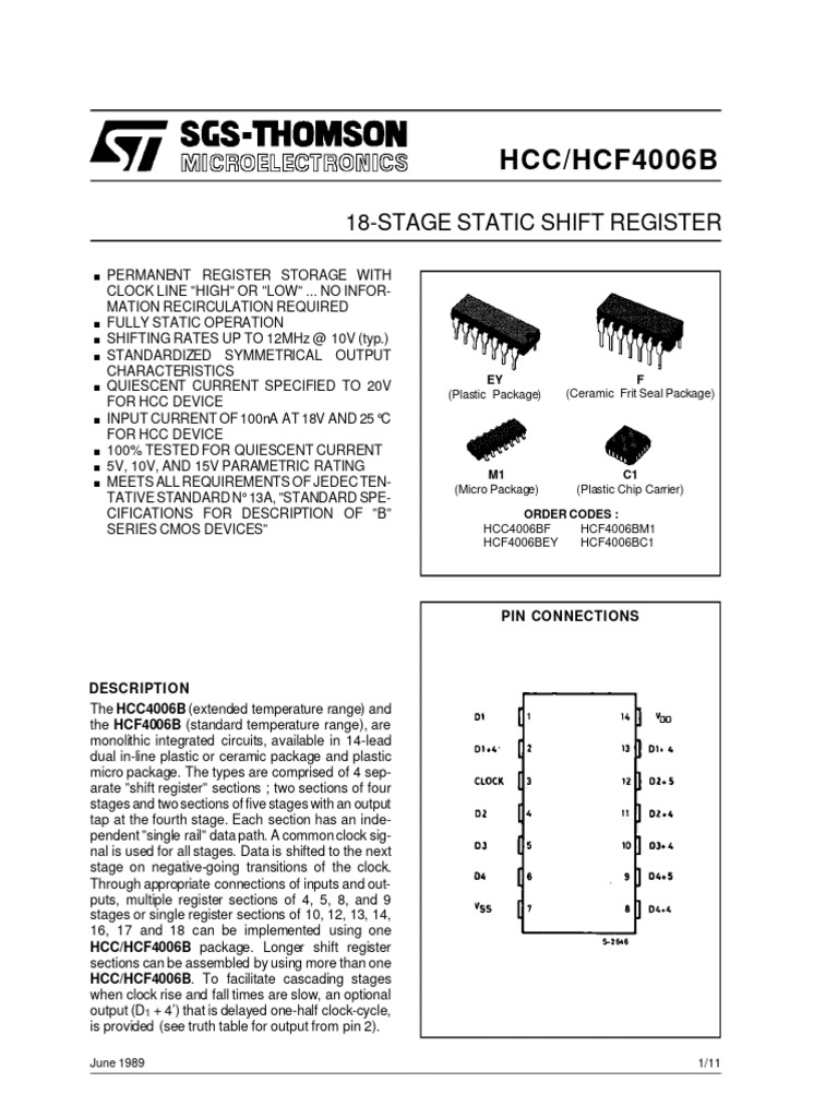 SERIES CMOS DEVICES” HCC4006BF HCF4006BM1