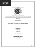 In partial fulfillment of LL.M– I Semester (IPR & CYBER LAW)) one year