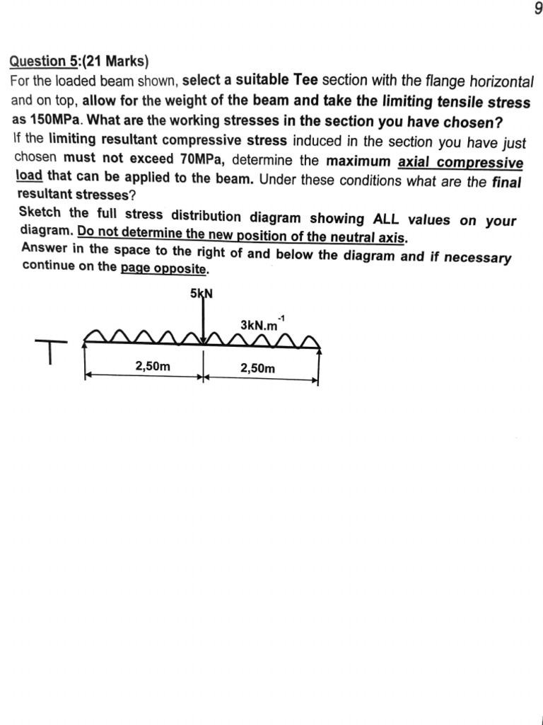 For the loaded beam shown, select a suitable Tee section with the flange horizontal