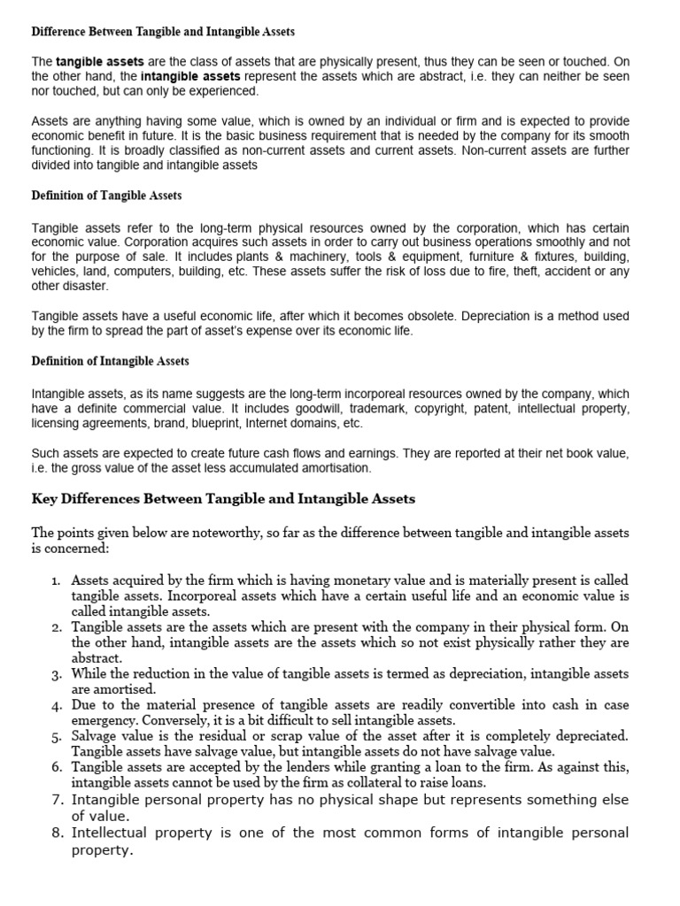 Key Differences Between Tangible and Intangible Assets