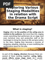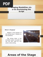 make sure that every action is visible to both sides of the audience. From a design perspective, staging is