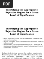 A. Acceptance Region C. Rejection region 10. Which of the following is the appropriate rejection region for the following given: