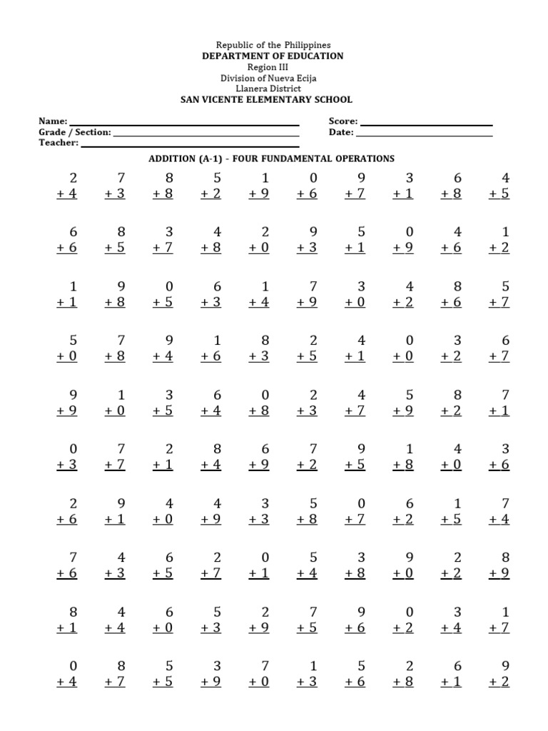 ADDITION (A-1) – FOUR FUNDAMENTAL OPERATIONS