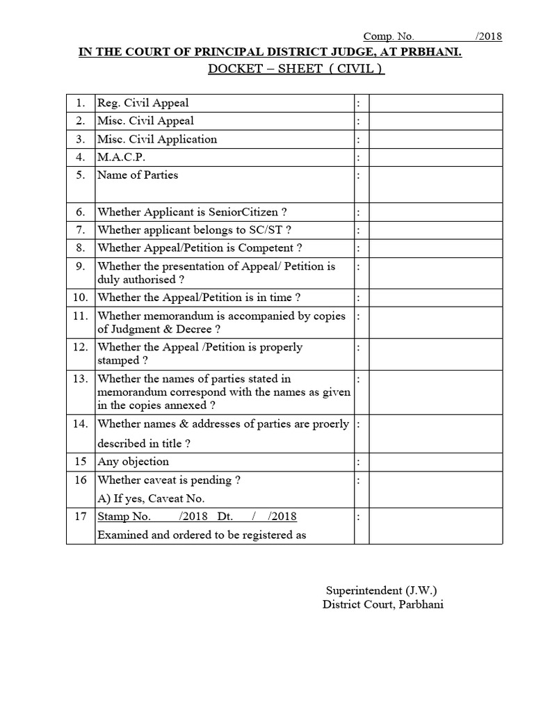 DOCKET – SHEET ( CIVIL )