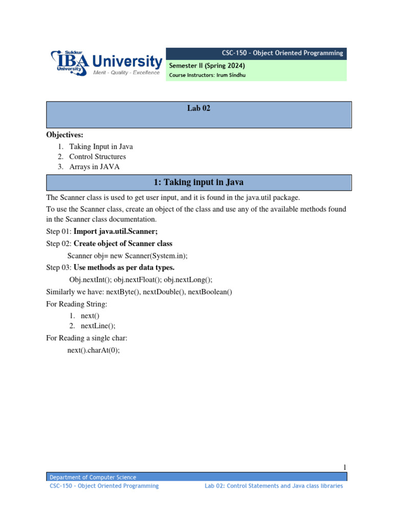 CSC-150 – Object Oriented Programming Lab 02: Control Statements and Java class libraries