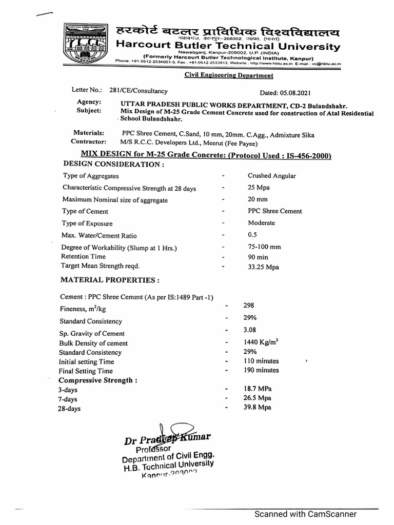 Subject: Design of M-25 Grade Cement Conerete used for construction of Atal Residential
